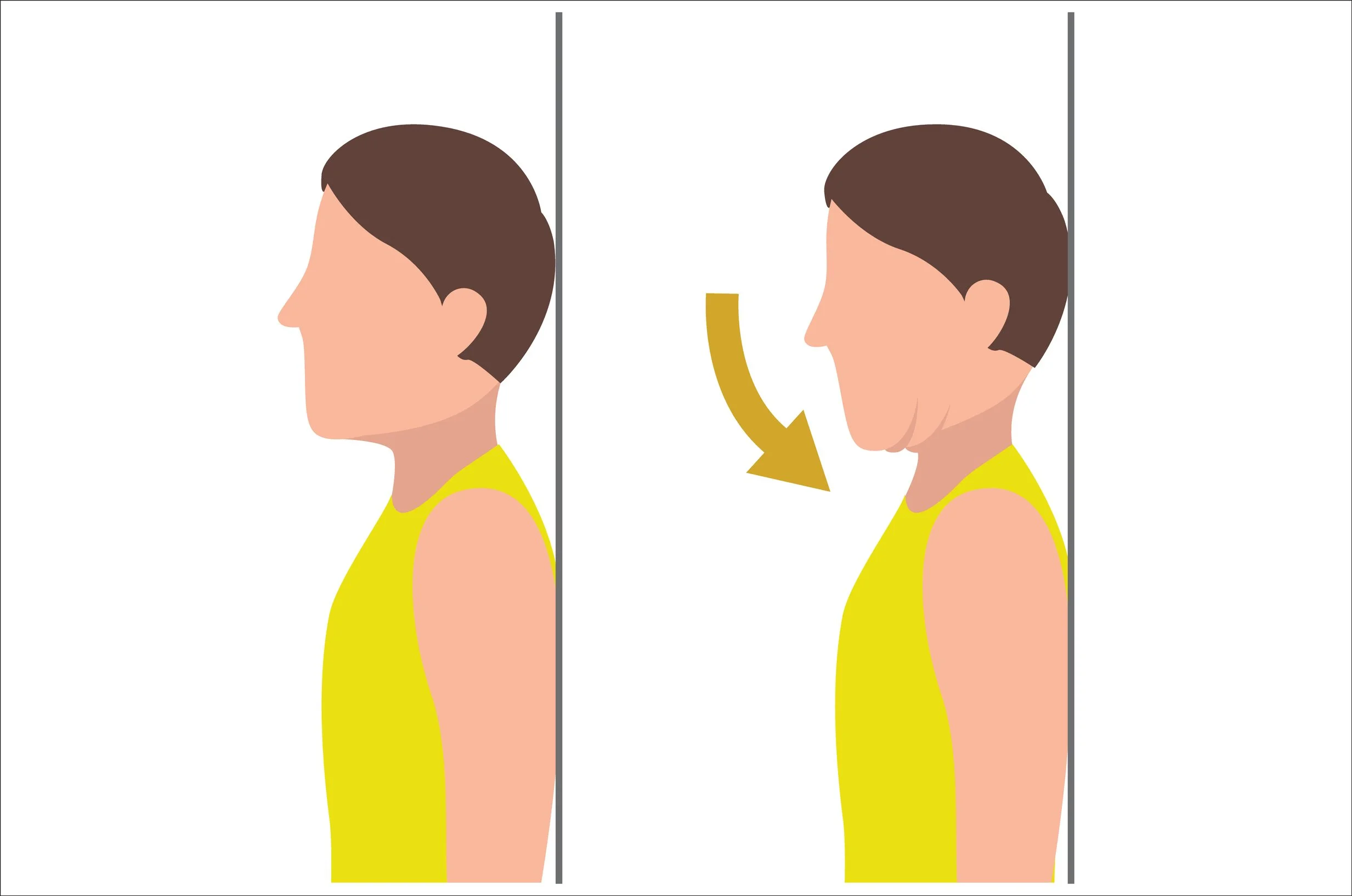 To perform a chin tuck, sit or stand tall. Gently pull the chin back—as if you’re making a double chin—without tilting your head up or down. Hold for a few seconds, then relax. Repeat this movement several times, feeling a gentle stretch along the back of the neck.